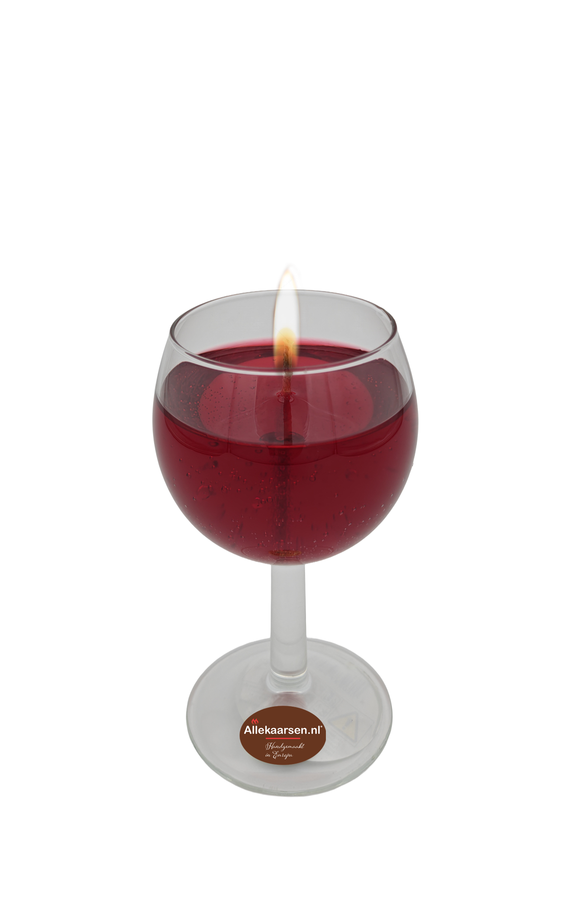 Geniet van de warme gloed van deze unieke gelkaars in een echt wijnglas, gevuld met dieprode gel die sprekend lijkt op een glas rode wijn. Een sfeervolle eyecatcher die elegantie en gezelligheid combineert – perfect voor diners, cadeaus of als bijzondere decoratie.
