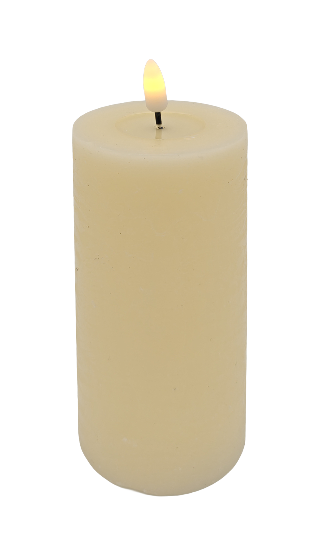 Deze stijlvolle LED stompkaars in ivoor creëert direct een warme en realistische sfeer dankzij de levensechte flakkerende vlam. Zonder open vuur of rook is hij ideaal voor thuis én voor locaties waar echte kaarsen om veiligheidsredenen niet zijn toegestaan, zoals instellingen en openbare ruimtes. Werkt op 2x AAA batterijen (niet meegeleverd).