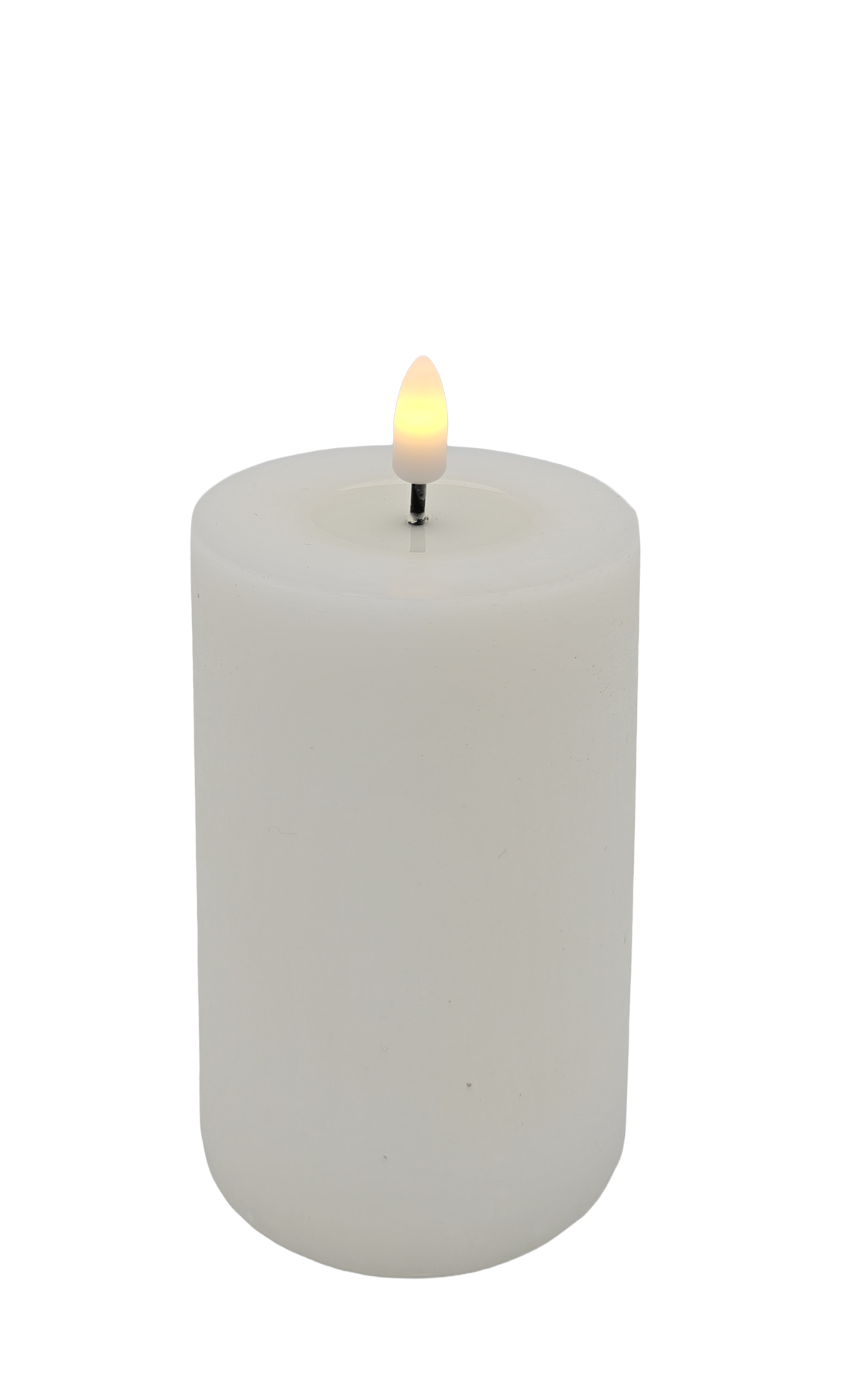 Breng warmte en sfeer in huis of instelling met deze rustieke LED stompkaars in wit. De levensechte flakkerende vlam geeft een realistisch kaarseffect, zonder rook of vuurgevaar. Werkt op 2x AAA batterijen (niet meegeleverd).