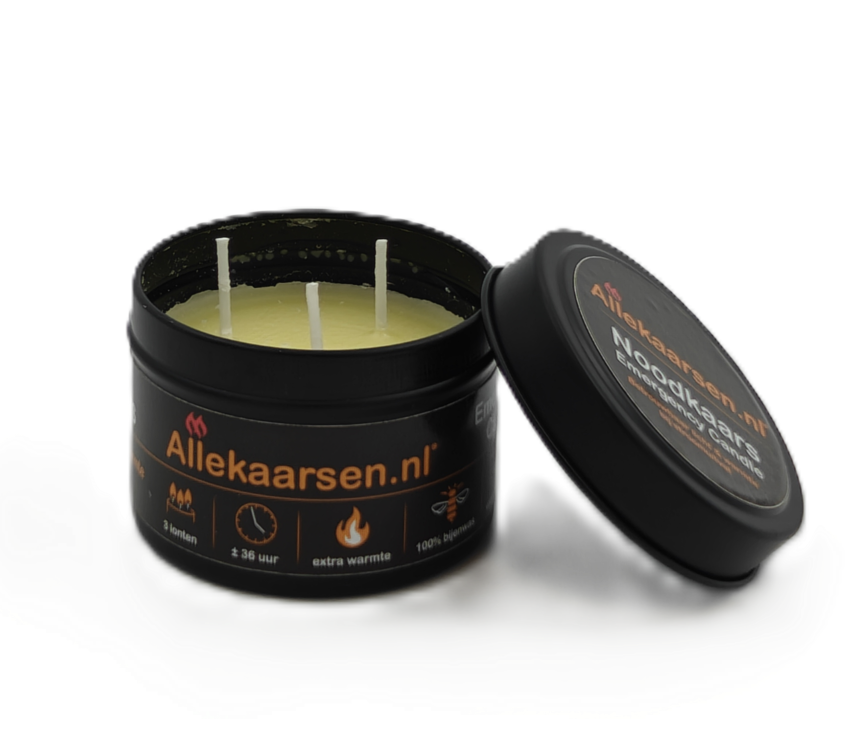 Dankzij de drie lonten geeft de kaars niet alleen langdurig licht, maar ook extra warmte, ideaal bij stroomuitval, kamperen of als vast onderdeel van een noodpakket. Bijenwas brandt schoon, gelijkmatig en zonder schadelijke stoffen, waardoor deze noodkaars ook geschikt is voor gebruik binnenshuis (altijd onder toezicht).