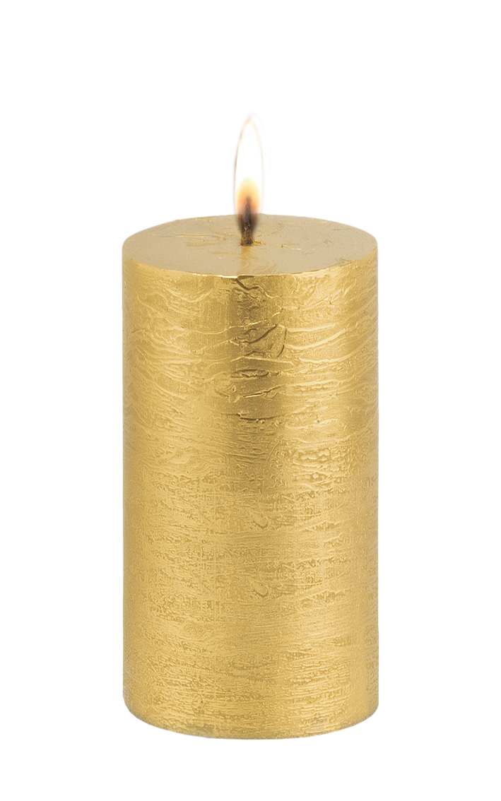 Een stijlvolle grote stompkaars in sprankelend goud. Een echte eyecatcher die uw interieur een feestelijke uitstraling geeft.