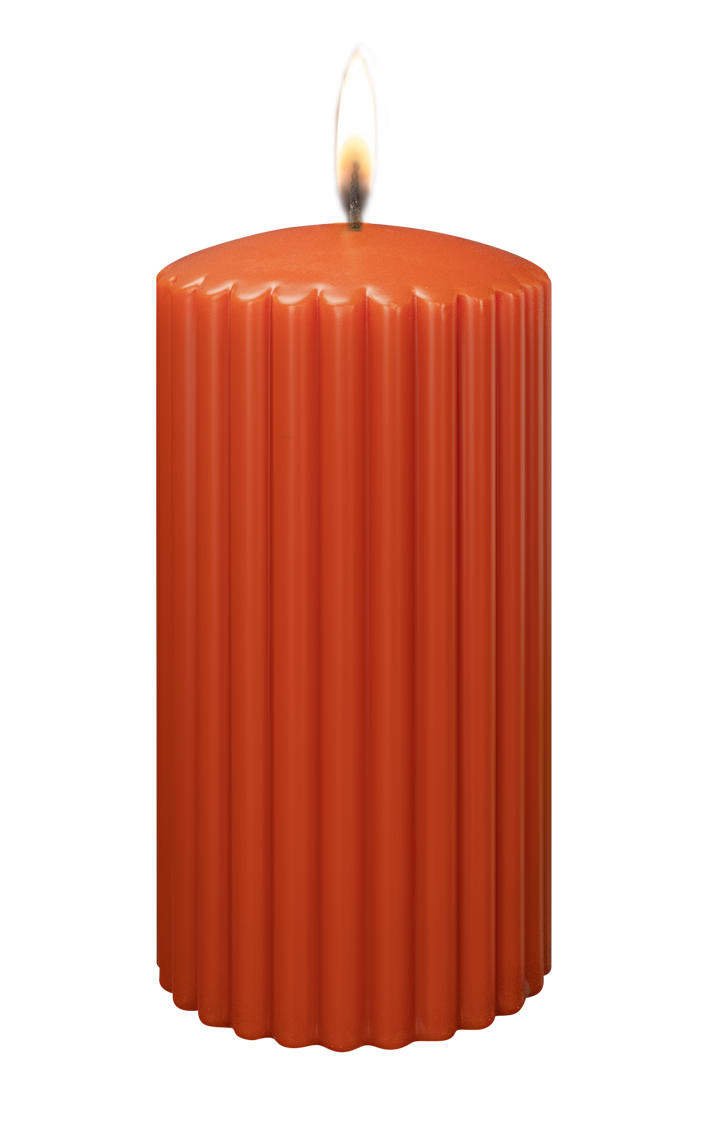 Deze goudoranje stompkaars met gerilde afwerking is een echte blikvanger. Perfect voor feestelijke tafels en zonnige accenten in huis.