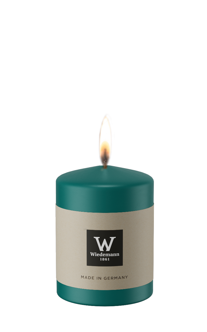 Een stijlvolle stompkaars in olijfgroen. Compact maar sfeervol, ideaal voor natuurlijke tafeldecoraties.