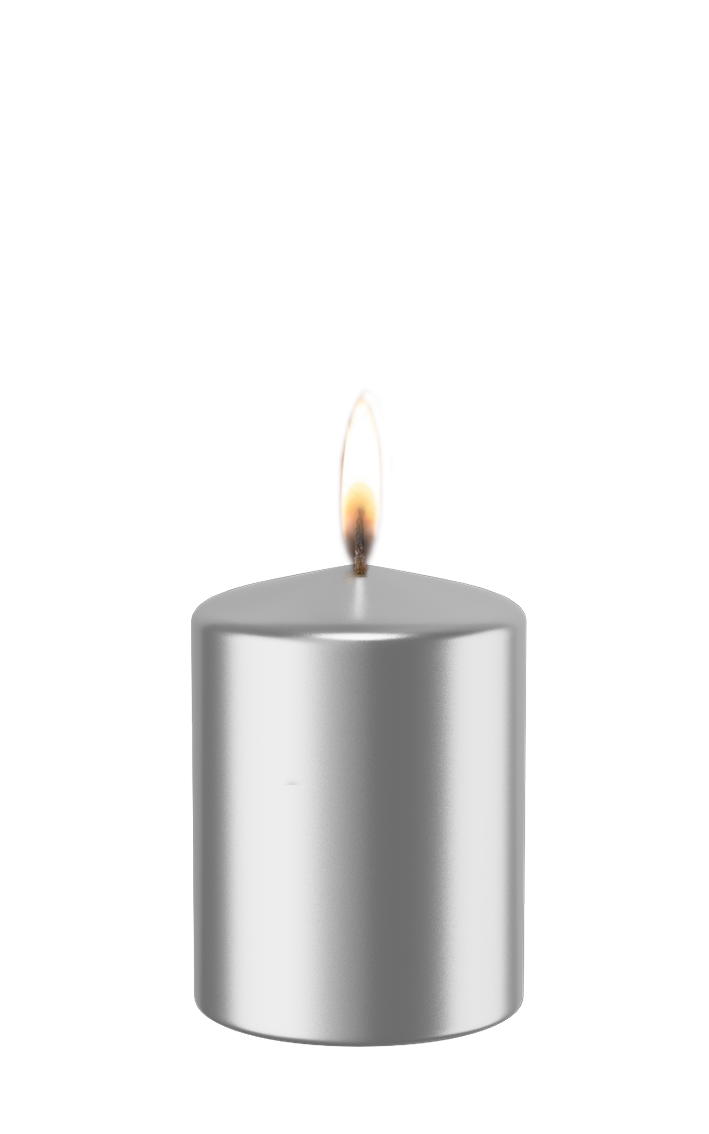 Een chique zilverkleurige stompkaars die luxe en elegantie toevoegt. Perfect voor feestelijke gelegenheden en tafeldecoraties.