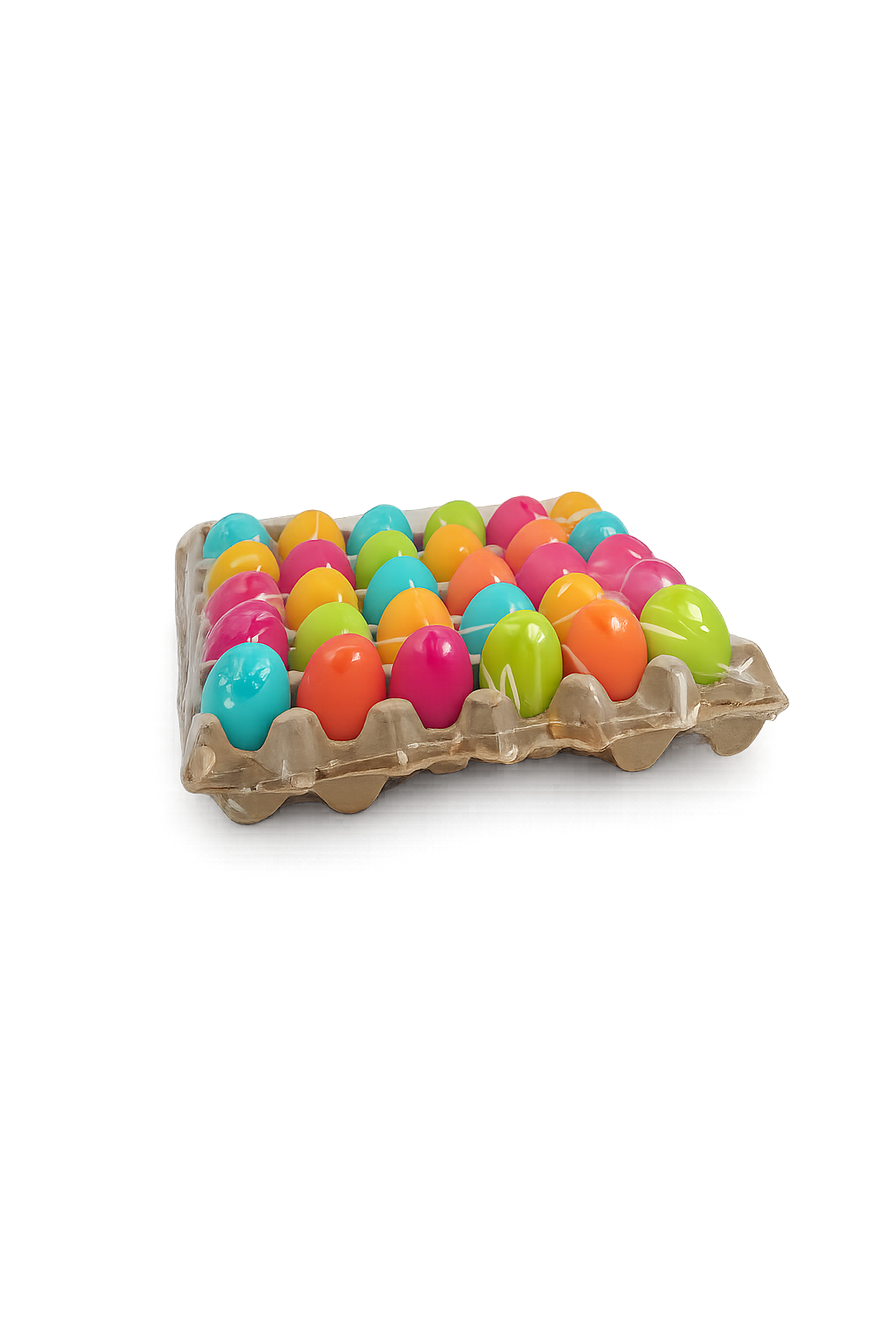Deze vrolijke eierkaarsjes zijn verpakt in een eierdoos met 30 stuks in frisse voorjaarskleuren. Perfect als paasdecoratie op tafel, in een schaal of als origineel cadeau rond Pasen.