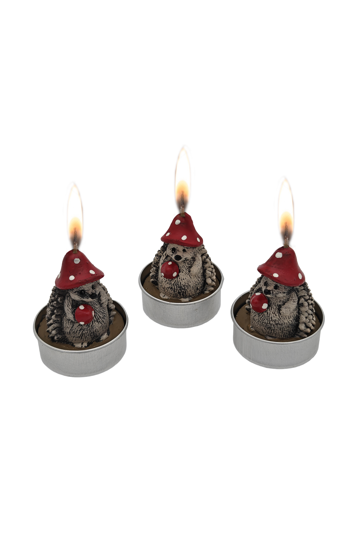Deze vrolijke set van 3 waxinelichtjes in de vorm van egeltjes brengt direct warmte en gezelligheid in huis. Met hun rode neusjes en grappige hoedjes zijn ze perfect voor de herfstperiode. Ideaal voor op tafel, de vensterbank of als sfeervol cadeautje!