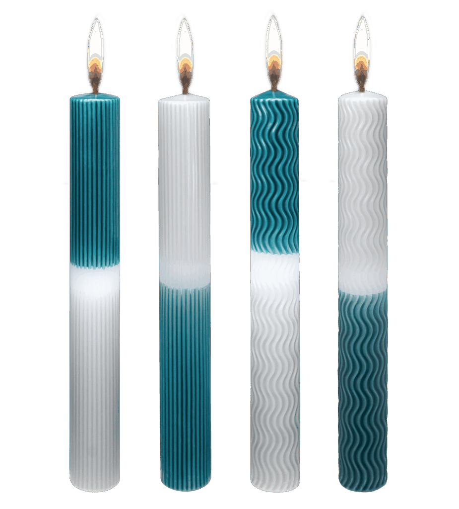 4 stuks dinerkaarsen 30×250 mm / Tin/Zeegroen